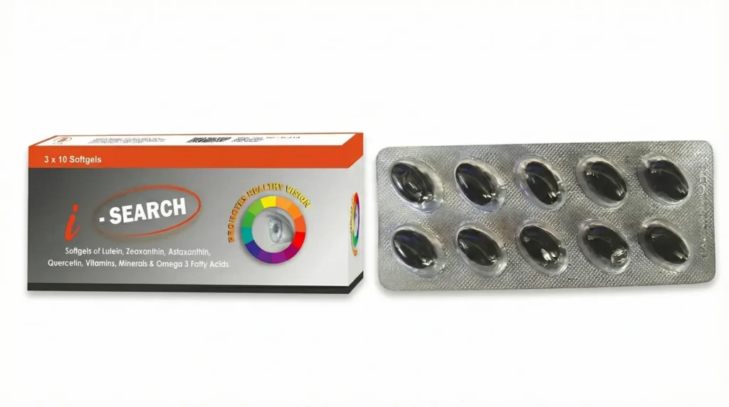 I–SEARCH is formulated with clinically proven nutrients to support eye health, reduce digital strain, and protect vision.